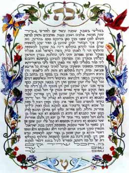The images of birds and flowers take this ketubah to lofty heights as one feels the spread of each bird's wings.