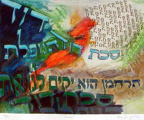 This series of Shalosh Regalim[Three Major Celebrations-Succot-Pesach-Shavuot] may be purchased together - $600 or individually $300 each. The approximate size of each litho is 18x24.